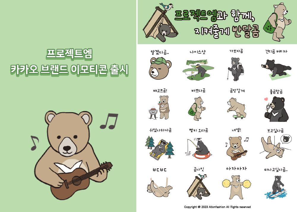 에이션패션(대표 박희찬)이 ‘프로젝트엠’의 반달가슴곰 보금자리 프로젝트 캠페인과 함께 오늘(8일) 문베어 카카오톡 이모티콘을 총 5만명에 무료 배포한다.