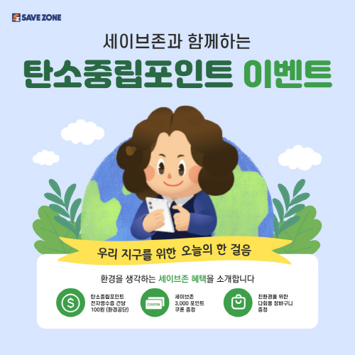 세이브존(대표 김현동)이 환경부 산하기관 한국환경공단과 탄소중립 실천문화 확산을 위해 전자영수증 발급 시 탄소중립포인트 제공 이벤트를 실시한다.