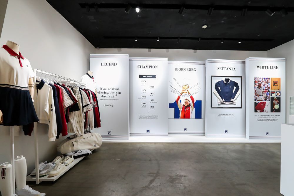 ‘휠라’의 테니스 역사를 한 눈에 살펴볼 수 있는 팝업스토어 공간 구성도 특별하다. 이탈리아 비엘라시에 위치한 휠라 뮤지엄 일부를 축소, 옮겨온 듯한 모습에 휠라 테니스의 상징적인 인물인 비욘 보그의 활약상을 담은 각종 연출물을 한 자리에서 만나볼 수 있다. 오랜 기간 테니스 대표 브랜드로 자리해 온 휠라가 소비자에게 테니스에 진심인 브랜드로 다가갈 수 있었던 배경을 확인하는 소통의 장으로 마련된 것이다.