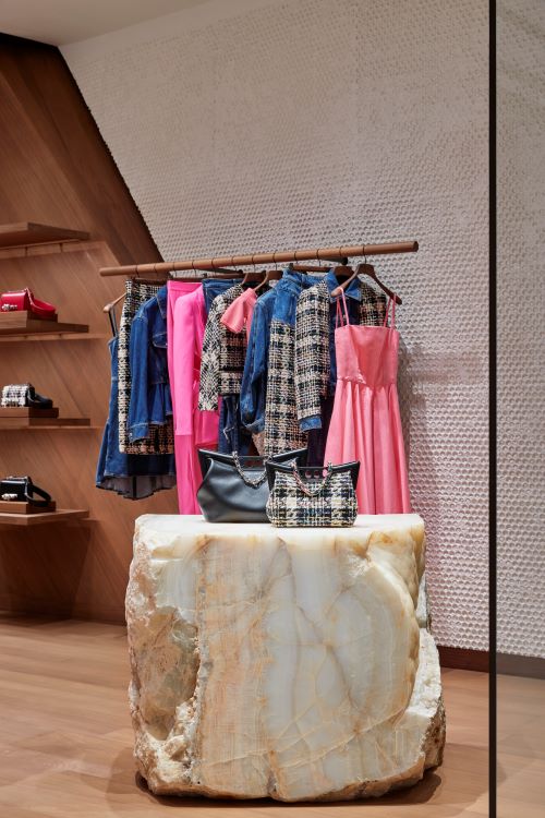 새로운 여성 부티크에서는 최신 2023 가을/겨울 프리 컬렉션의 의류, 가죽 제품, 슈즈, 액세서리 및 선글라스 등의 매력적인 제품들을 만나 볼 수 있으며 그중에서도 하우스의 가장 아이코닉 백인 주얼 사첼 백이 단연 시선을 사로잡는다.
