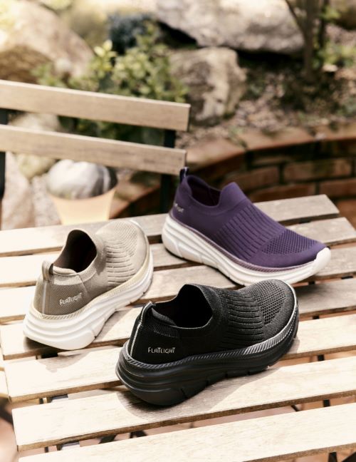 이번 시즌 플랫라이트는 소비자들에게 편안하면서도 스타일리시하고, 활용도 높은 가을 패션을 제안한다. 니트 소재의 슬립온 스타일 슈즈로 편안한 착화감이 특징이다. 곡선형으로 이루어진 어퍼와 아웃솔 라인으로 발을 부드럽게 감싸줘 안정감을 준다. 또한 볼륨감 있는 플랫폼 아웃솔과 메모리폼 인솔을 적용해 푹신한 쿠셔닝을 제공한다.