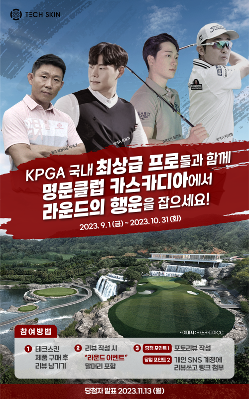 론칭 5주년을 맞은 ‘테크스킨’은 공전의 히트를 기록한 ‘컨트롤 골프티’ 시리즈 등 아이디어 골프용품이라는 컨셉트에 더해 합리적인 가격과 유니크한 디자인, 독보적인 컬러감으로 특히 젊은 골퍼들에게 큰 인기를 모으고 있는 브랜드. 이번 고객 감사 이벤트 역시 누적매출 500억 원이라는 기록적인 수치를 만들어 준 고객 성원에 대한 보답의 일환이라는 설명이다.