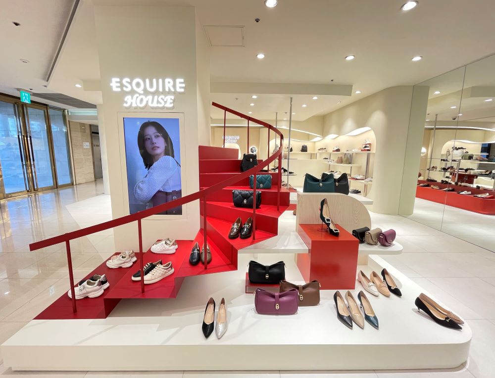 매장에 방문하는 고객에게 ‘에스콰이아’의 향상된 고객서비스와 제품, 공간의 경험을 느낄 수 있도록 설계되었다. 슈즈와 백의 피팅이 수월할 수 있도록 여유 공간을 확보하여 고객 편의성을 높혔으며 최적화된 동선으로 편안하게 쇼핑할 수 있도록 공간을 구성했다. 제품은 모던 클래식과 컨템포러리가 공존하면서 라이프 스타일까지 아우르는 다채로운 2023년 FW 신상품으로 제안한다.