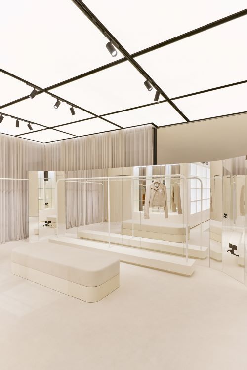 신세계 강남점 3층에 73.65㎡(22.3평) 규모로 자리잡은 이번 매장은 지난 2020년 9월 프랑스 파리의 루 프랑수와 프르미에에 재개장한 역사적인 ‘꾸레쥬’ 플래그십 스토어에서 영감을 받았다. ‘꾸레쥬’를 상징하는 색상인 화이트를 콘셉트로 포근한 분위기를 연출했다.