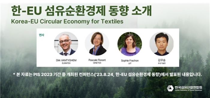 한국섬유산업연합회(회장 최병오)가 지난 8월 24일에 코엑스에서 개최된 한-EU 섬유순환경제 국제 컨퍼런스에서 발표된 내용을 유튜브 KOFOTI TV를 통해 업계에 공유했다.