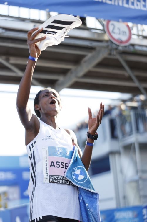 ‘아디다스’ 후원선수인 티기스트 아세파가 2023 베를린 마라톤에서 42.195km를 2시간 11분 53초로 달려 여자 세계 마라톤 신기록을 달성했다.