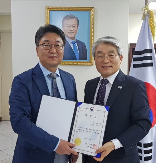 지난 3일 주 과테말라 대한민국 대사관에서 진행된 수여식에는 홍석화 주 과테말라 대사를 비롯한 대사관 직원들과 안태영 한세실업 과테말라 법인장 등 한세실업 과테말라법인 직원들이 참석했다.