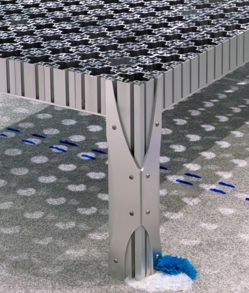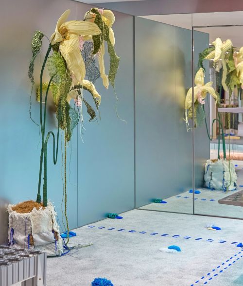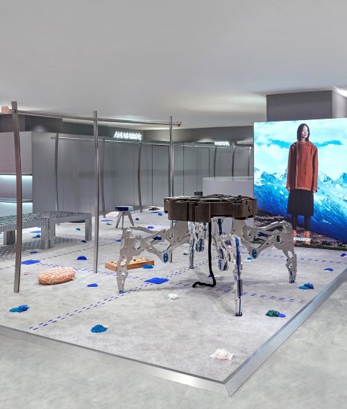 또한 거미줄의 기하학적 구조에서 영감을 받은 테이블 오브제는 모듈형 디자인과 방향성을 지닌 형태로 ‘연결’과 ‘확장’의 개념을 공간적으로 풀어냈으며 공예적 미감을 담은 패브릭 플로어와 피팅룸이 대표적이다. 더불어 정혜진 작가와 협업한 식물 오브제와 ‘아더에러’의 실험정신을 보여주는 하부 포디움은 플러그샵의 문법을 반영해 단순한 리테일 공간을 넘어 브랜드와 고객이 감각적으로 공명하는 커뮤니케이션 플랫폼으로 기능하는데 집중했다.