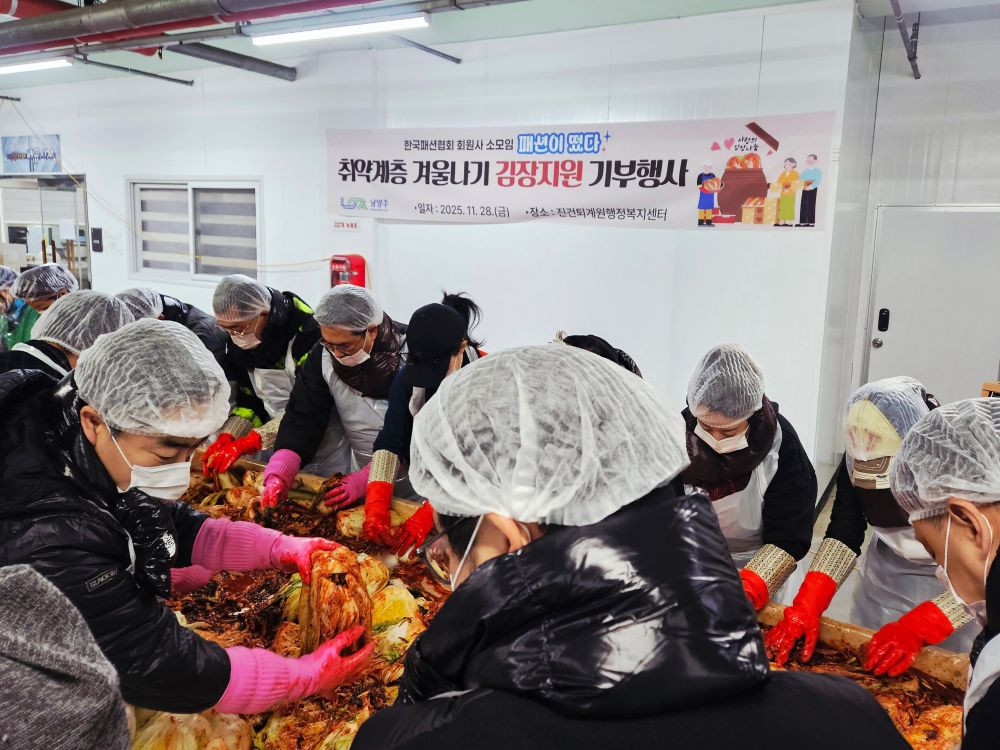 한국패션협회(회장 성래은) 회원사 소그룹 모임 ‘패션이 떴다’(패떴)가 남양주시 진건퇴계원행정복지센터에서 11월 28일 김장 김치 1,000포기를 직접 담가 취약계층가구에 전달했다.