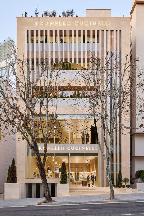 파사드 전면부는 고대부터 오늘날까지 세계 유명 도시를 방문하는 사람들을 맞이해 온 관문이었던 ‘아치’ 디자인을 적용했다. 2014년 ‘브루넬로 쿠치넬리’는 2500년 된 고대의 아치 ‘에트루리아 문’의 복원을 추진했으며 이는 이번 플래그십스토어의 파사드 디자인에도 영향을 미쳤다.