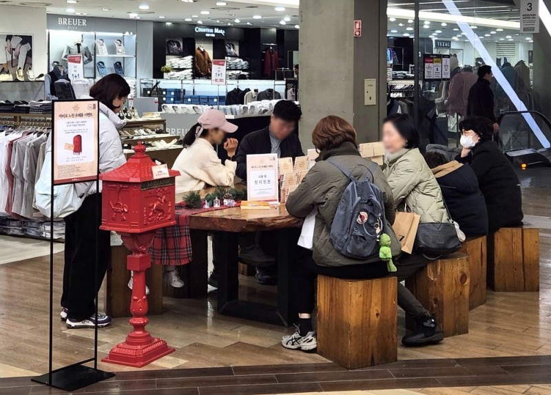 해당 이벤트는 12월 5일부터 시작돼 단 1주 만에 참여 고객 수 500명을 넘어섰으며 초기 예상보다 높은 참여율로 운영 예산을 초과할 만큼 반응이 이어지고 있다. 특히 가족 단위 방문객을 중심으로 부모와 자녀, 부부, 연인 등이 함께 엽서를 작성하는 모습이 눈에 띄며 연말 분위기를 더하고 있다.