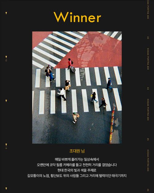 지난 9월 열린 ‘Share Your Kodak Moment 사진 영상 공모전’은 총 613명이 지원하며 뜨거운 관심 속에 높은 경쟁률을 기록했다. 공모전은 출품 접수부터 심사까지 약 3개월간 진행됐다. 사진 부문 1차 미션은 각자의 순간을 기록한 자유 주제로 진행됐다. 이후 10명을 선발해 ‘한국의 빛과 색’을 주제로 2차 미션이 진행됐다. 특히 사진 부문은 코닥 필름으로 촬영한 작품만 제출하도록 규정해 코닥 고유의 헤리티지와 브랜드 아이덴티티를 한층 선명히 했다.
