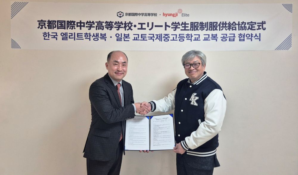 형지엘리트는 지난 8일 일본 교토국제중고등학교에서 양측 관계자들이 참석한 가운데 교복 공급 계약 체결식을 진행했다. 이번 계약에 따라 오는 3월 신학기부터 교토국제중고등학교 전교생에게 ‘엘리트학생복’이 공급된다. 특히 교토국제고는 지난 2024년 일본 최고 권위의 전국고교야구선수권대회 고시엔을 제패하며 화제가 된 야구 명문 고교다.