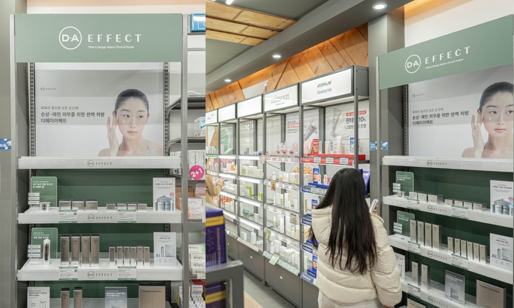 약국에서는 제품의 기능과 사용 맥락에 대한 설명을 거친 후 구매가 이루어지는 특징이 있다. 약국 입점은 ‘디에이이펙트’가 특정 상황에 한정된 제품이 아닌 민감해지기 쉬운 피부 상태 전반을 일상적으로 관리하는 데일리 더마 브랜드로 포지셔닝하고 있음을 보여준다. ‘디에이이펙트’는 DA성형외과, DA피부과의원 도산 등 전국 단위 DA 의료 네트워크에 입점하며, 의료 현장을 기반으로 한 전문 유통망을 구축해온 바 있다.