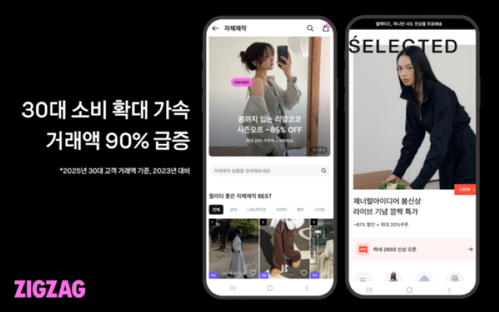 지그재그가 2025년 기준 고객 데이터를 분석한 결과 30대 거래액이 전년 대비 30% 증가한 것으로 나타났다. 2023년 거래액과 비교하면 약 2배(90%) 성장한 수치다.