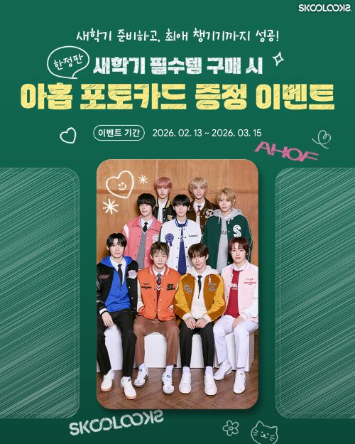 스쿨룩스(대표 오현택)가 새학기를 맞아 오는 13일부터 내달 15일까지 공식 온라인몰 ‘마켓스쿨’에서 신규 런칭 용품 및 패션교복 구매 고객을 대상으로 전속 모델 아홉 스페셜 포토카드를 증정한다.