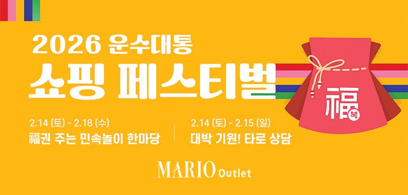 마리오아울렛(회장 홍성열)이 다가오는 설 명절을 맞아 오는 2월 14일부터 ‘2026 운수대통 쇼핑 페스티벌’을 개최한다.