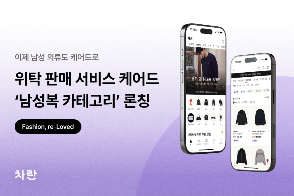 차란은 완전 위탁형 서비스 ‘케어드’와 판매자 직접 등록 방식의 C2C 서비스 ‘차란마켓’을 함께 운영하고 있다. 기존에는 차란마켓에서만 남성복을 취급해 왔으나 이번 론칭을 통해 케어드에도 남성복 카테고리를 공식 도입했다.