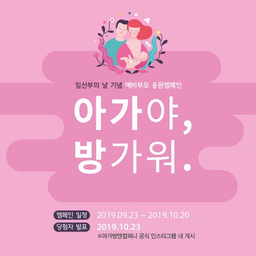 이번 캠페인은 아가방앤컴퍼니의 공식 인스타그램 계정(@agabangncompany_official)을 통해 오는 10월 20일까지 약 한 달 동안 진행된다. 육아를 처음 시작하는 예비맘과 곧 태어날 아가를 기다리는 예비 부모들을 위해 응원의 메시지를 전달하는 캠페인으로 사진과 함께 지정된 해시태그를 개인 인스타그램 피드에 올리면 참여가 가능하다.