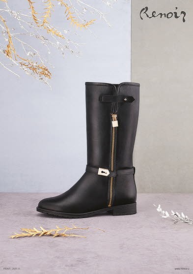 르느와르 화이트 부츠는 심플한 실루엣에 크림베이지 톤의 조화로 우아한 매력을 발산 하면서도 고탄성 쿠션인솔과 플렉시블한 아웃솔로 편안한 착화감을 제공하며 동일한 디자인의 시크한 분위기를 연출할 수 있는 블랙 컬러도 구성하였다.