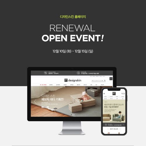 디자인스킨은 이번 리뉴얼 오픈을 기념해 풍성한 혜택의 이벤트도 진행한다. 오는 15일까지 전 품목 7%~최대 43%까지 할인 받을 수 있는 쿠폰을 증정하고 인기제품 3종(케이크소파, 캔디매트, 플레이테이블소파)에 한해 특별한 가격에 한정 판매를 실시한다. 더불어 쇼핑몰을 통해 제품을 구매한 고객 전원에게 금액별 사은품을 증정하며, 그 중 추첨을 통해 220만원 상당의 괌 여행 4박 숙식권(PIC 리조트)을 선물할 예정이다. 당첨자는 24일 쇼핑몰 내 이벤트 페이지를 통해 공개된다.