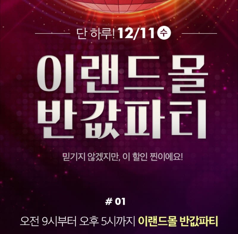 이랜드몰은 11일 단 하루 시간대별 초특가 득템 상품과 반값쿠폰, 하루 종일 진행되는 극한 특가 상품까지 다채로운 이벤트를 준비했다. 오전 9시부터 오후 5시까지 진행되는 이랜드몰 반값파티는 두 시간마다 선착순 고객에 한해 인기상품을 초특가에 제공한다.