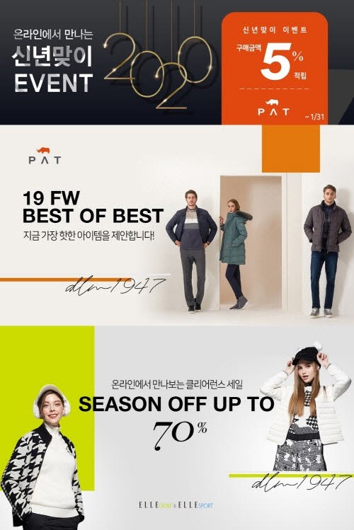 이번 이벤트는 ‘피에이티’와 ‘엘르골프’의 다운 점퍼, 다운 팬츠, 코트 등 겨울 제품을 합리적인 가격으로 만나볼 수 있다. 또한 온라인몰에서 다양한 신년맞이 이벤트도 진행한다.