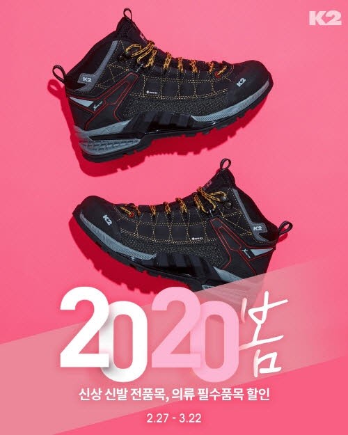 ‘K2’가 봄 시즌을 맞이하여 신상품 구매 시 15% 할인 혜택을 제공하는 2020 봄 프로모션을 진행한다.