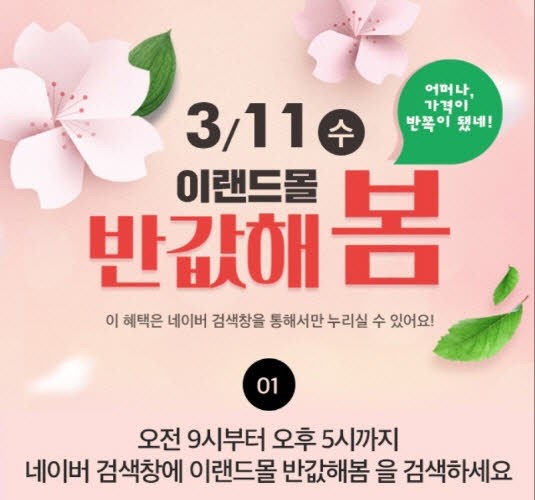 이랜드몰이 오는 11일 단 하루 동안 인기 브랜드 및 상품을 초특가에 제공하는 봄맞이 ‘반값해봄’ 행사를 진행한다.