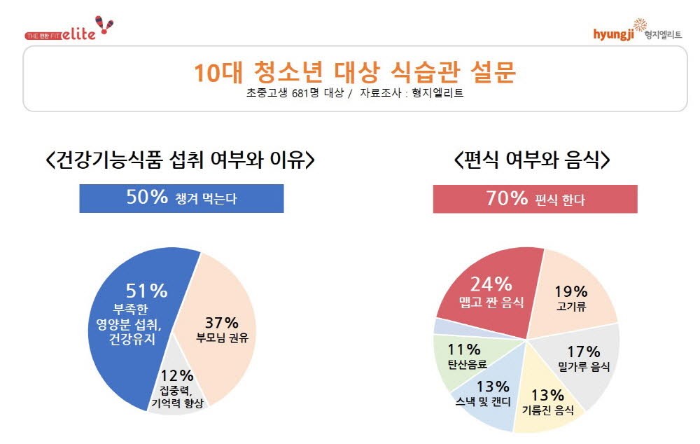 형지엘리트(대표 최병오)가 최근 코로나로 인해 집에 있는 날이 늘어난 10대 청소년을 대상으로 건강기능식품 섭취 여부와 편식, 아침식사 등에 대해 설문조사를 실시했다.