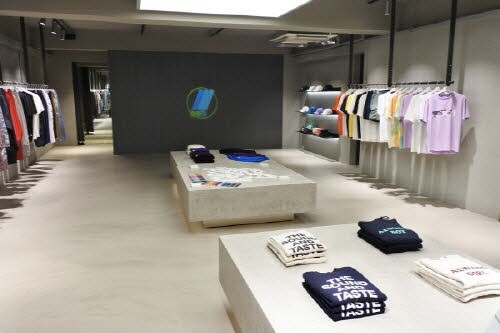 갤러리가 연상되는 컨셉의 매장은 그레이 톤으로 바닥과 천장을 통일 시켜 차분한 분위기를 조성했다. 보드를 타고 내려오는 느낌을 주는 슬라이드 구조의 개성 있는 입구는 스트리트 브랜드의 면모를 드러냈다. 매장 중앙에 위치한 대칭 구조의 두 가지 테이블이 고급스러운 느낌을 선사하며 휠이 달려 자유로운 이동이 가능해 매번 다른 구조의 디스플레이로 공간의 재미를 선사한다.
