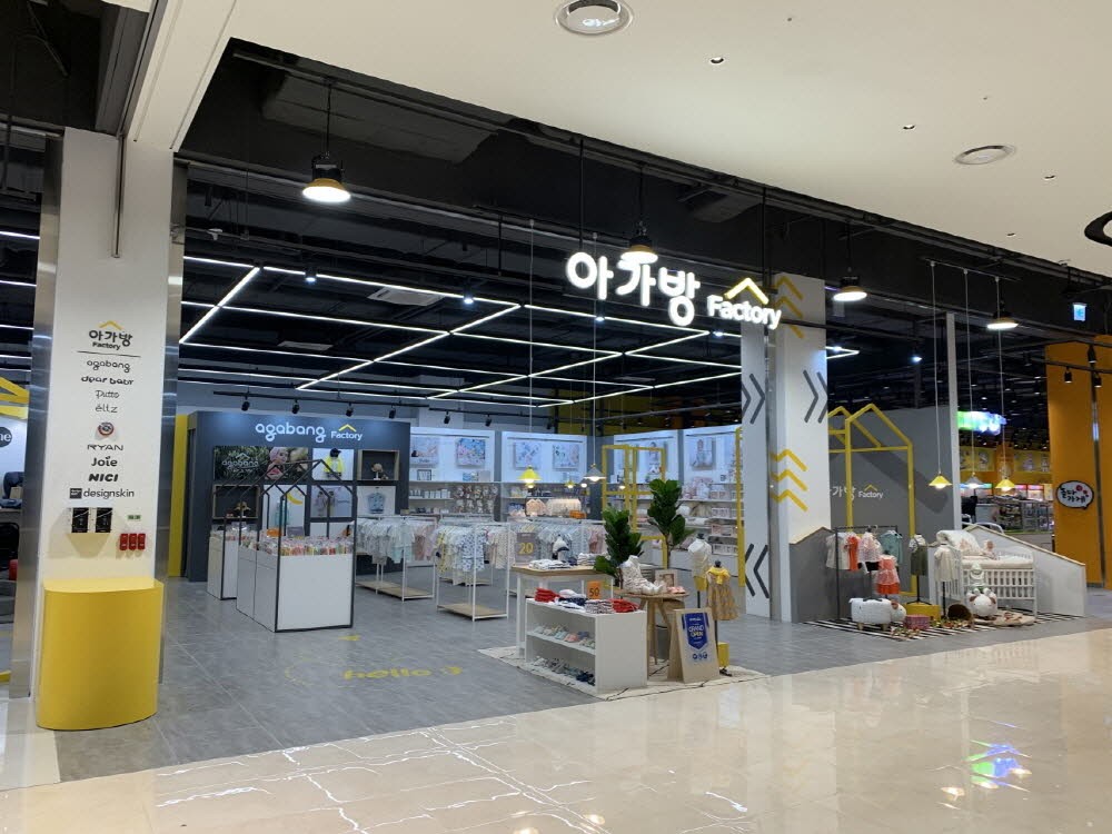 ‘아가방 팩토리’는 국내 아가방앤컴퍼니 아웃렛 매장 중 최대 규모(96평)이며 국내 대표 유아복 브랜드 ‘아가방’을 비롯한 육아 관련 브랜드 10여개(디어베이비, 퓨토, 엘츠, 미니노어, 베베리쉬, 니키, 디자인스킨 등)의 제품을 한곳에서 확인할 수 있다. 출산용품부터 유아 의류, 발육 용품, 놀이 매트까지 아가방 팩토리 매장 안에서 출산과 육아에 필요한 모든 제품을 구매할 수 있는 원스톱 쇼핑이 가능하다.