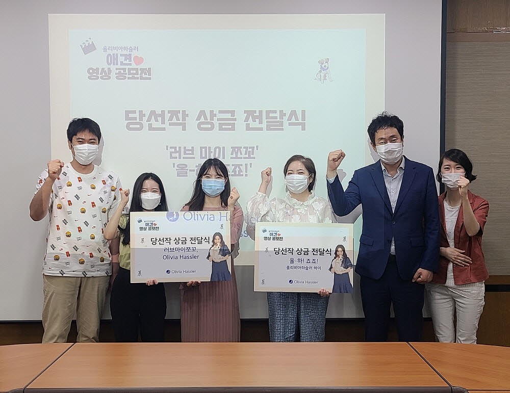 이번 상금 전달식에는 최종 당선작 2팀 및 올리비아하슬러 관계자가 참석했다. 공모전은 ‘반려견과의 건강하고 활기찬 라이프스타일’을 주제로 2월 3일부터 3월 8일까지 진행했으며 다양한 견종의 재치있는 영상이 다수 공모되었다.