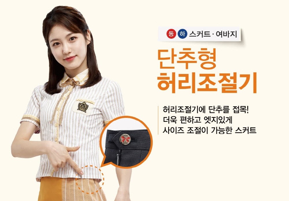 우선 자녀의 키 성장에 대비한 ‘파워시접’ 기능은 교복의 바지와 스커트 속 최대 8cm의 시접을 통해 교복 길이를 마음대로 조절이 가능하다. 또한 허벅지 안쪽에도 최대 2cm의 시접을 두어 허벅지 쓸림을 최소화하고, 필요 시 바지 통을 늘릴 수 있다.
