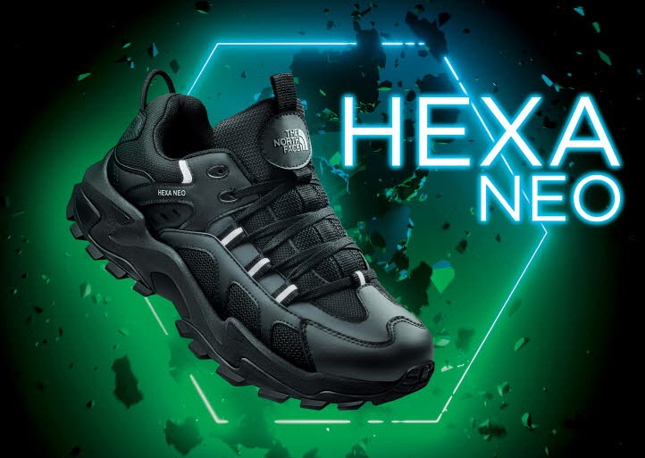 ‘노스페이스’는 친환경 아웃도어 어글리슈즈인 헥사 네오를 출시했다. 이 제품은 족당 500ml 페트병 6개가 재활용된 100% 리사이클링 메시와 공장에서 재단하고 남은 가죽 조각을 재활용한 리사이클링 가죽을 갑피에 적용했다. 또한 인솔에는 생분해가 빠르고 속건성이 우수한 천연 메리노 울 소재를 적용하여 착화 시 발을 쾌적하게 유지시켜 준다. 가볍고 충격흡수능력이 뛰어난 파일론 소재의 미드솔을 적용해 발에 전해지는 충격과 피로도를 낮췄다.