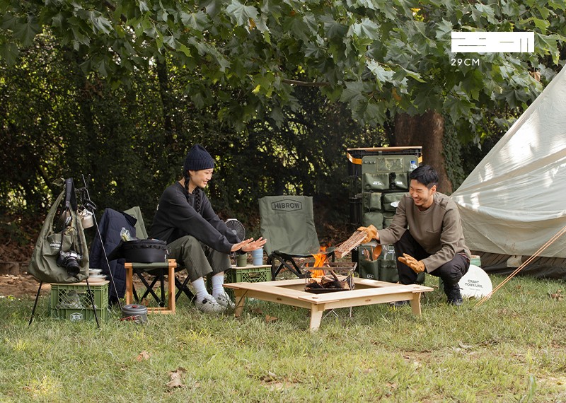 ‘하이드아웃’과 ‘하이브로우’는 캠핑, 피크닉, 세차라는 세 가지 라이프스타일에 감성을 담은 상품으로 카키 컬렉션을 채웠다. 카키 컬렉션은 의류부터 캠핑 액세서리에 이르기까지 다양한 아이템으로 구성되어 있다. ‘하이브로우’는 우유 배달 박스를 수납 박스로 제품화한 ‘밀크박스’를 기획한 노하우를 기반으로 세차 버킷 박스와 함께 세차에 필요한 각종 도구를 선보인다. ‘하이드아웃’은 여기에 어울리는 다양한 형태의 툴백과 용품 등을 디자인했다. 또한 다양한 주말 활동에 어울리는 ‘Half padding jumper(하프 패딩 점퍼)’, ‘short padding jumper(짧은 패딩 점퍼)’를 선보인다. 가을에는 아우터로, 겨울에는 이너로 착용할 수 있는 경량 패딩 아우터로 가볍고 실용적인 것이 특징이다.