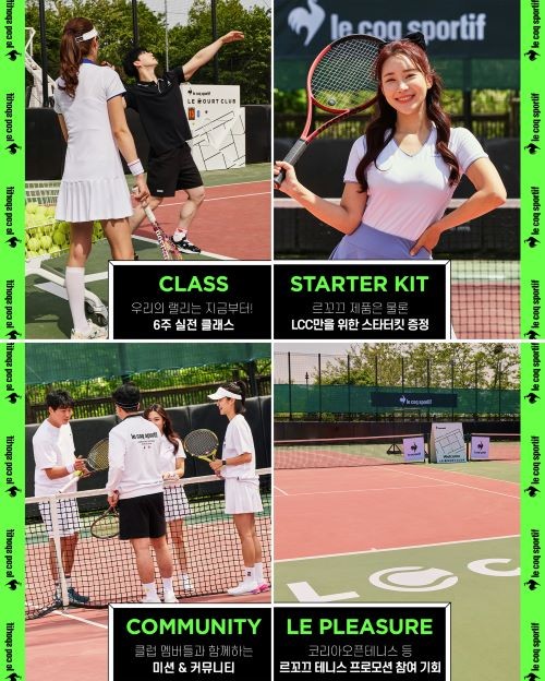 르코트 클럽의 크루들은 매주 90분씩 신사동 위치한 왓어샷(WHAT A SHOT) 코트에서 전문 코치들의 지도를 받으며 테니스를 배우고 크루들과 교류하며 ‘르꼬끄’의 테니스 제품들을 직접 체험할 수 있다.