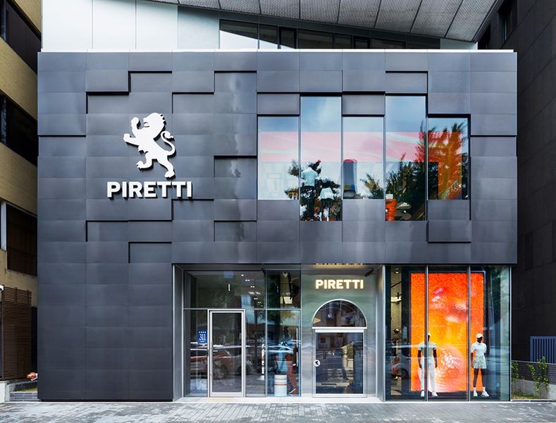 ‘피레티’ 도산 플래그샵은 피레티의 시그니처 제품들은 물론 ‘피레티’ 퍼터를 직접 체험하고 구매할 수 있으며 2층은 고객을 위한 라운지로 운영된다. 2층에는 입체적인 구조의 미디어월을 설치해 미디어 아트를 감상할 수 있도록 했으며 현재는 ‘피레티’가 가진 골프에 대한 철학을 담은 ‘스튜디오 아텍’의 ‘Gong; Towards Victory’가 전시 중이다.