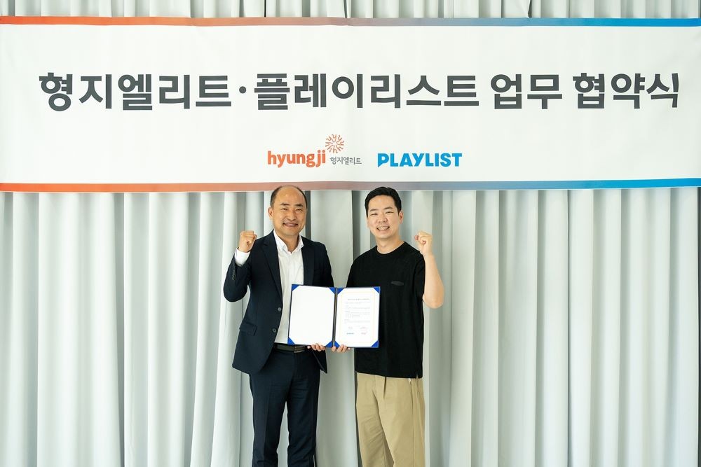 지난 3일 서울 용산구에 위치한 플레이리스트 본사에서 진행된 협약식은 형지엘리트 김남용 본부장과 플레이리스트 박태원 대표를 포함한 양사 관계자들이 참석한 가운데 진행됐다.