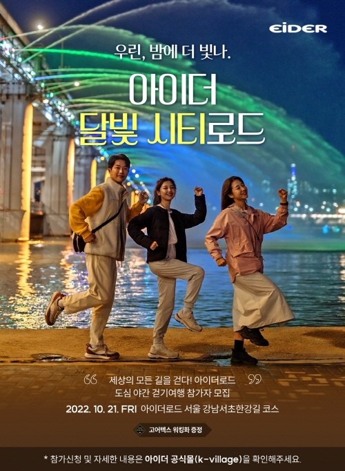아이더가 걷기 좋은 계절을 맞아 서울 도심 야간 걷기 여행 캠페인인 아이더 달빛 시티로드 참가자를 모집한다.