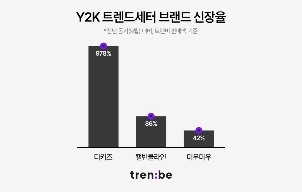 트렌비는 이 같은 패션 트렌드로 지난 9월 Y2K 관련 상품 판매액이 작년 동기 대비 최대 978% 증가했다고 밝혔다.