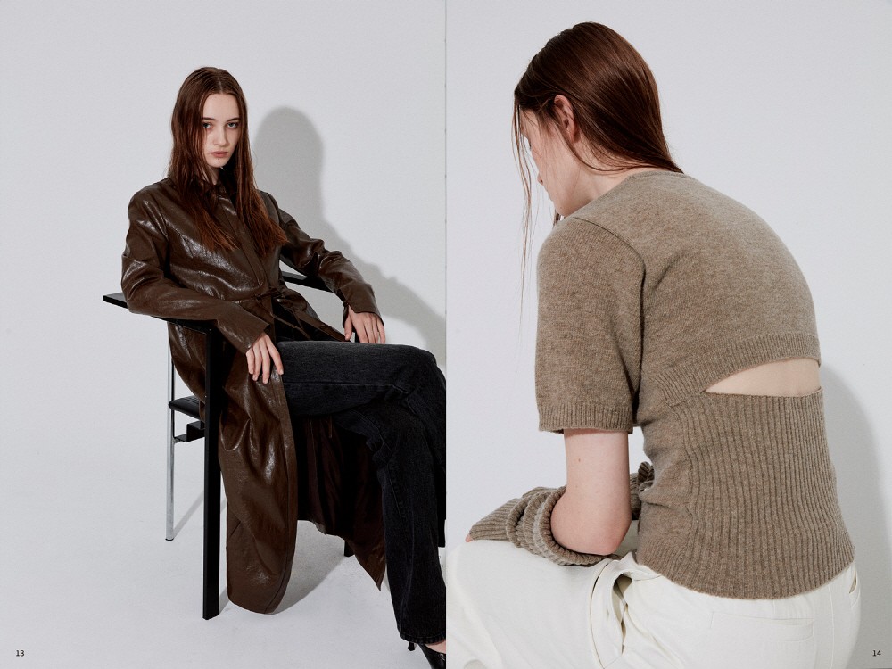 키 아이템 중 하나인 라인 롱코트는 페미닌한 무드의 슬림한 실루엣이 돋보이며 여유 있는 핏과 싱글 버튼, 허리 스트랩으로 다양한 실루엣을 연출할 수 있는 오버사이즈 싱글 블레이저도 눈여겨볼 만하다. 또한 트위드 소재의 가디건과 슬리브리스 셋업 아이템인 프린지 트위드 셋업, 사선으로 떨어지는 밑단과 핸드 워머 스타일이 돋보이는 터틀넥 니트 등도 함께 만날 수 있다.