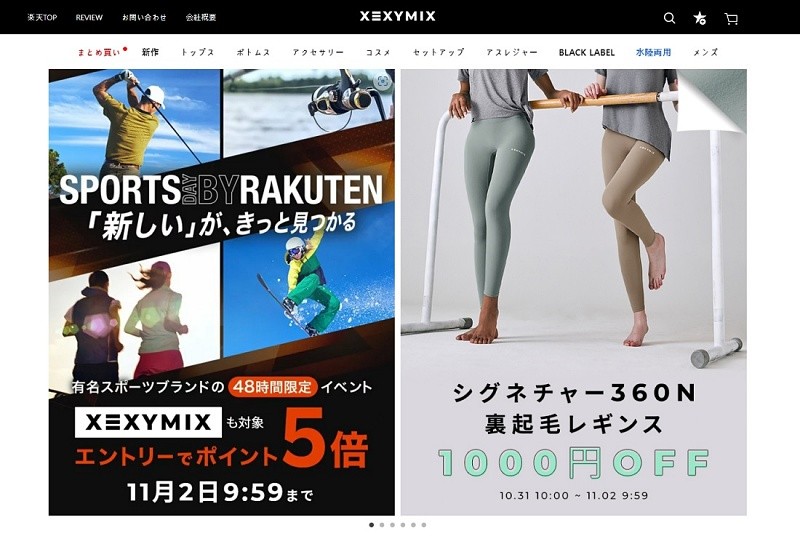 라쿠텐은 오는 2일까지 스포츠데이 선정 브랜드를 구입하는 회원들에게 최대 5배에 해당하는 적립금을 제공하는데 ‘젝시믹스’도 스포츠데이 선정을 기념해 블랙라벨 시그니처 360N 더블플러피 기모레깅스 1,000엔 할인쿠폰을 제공한다.