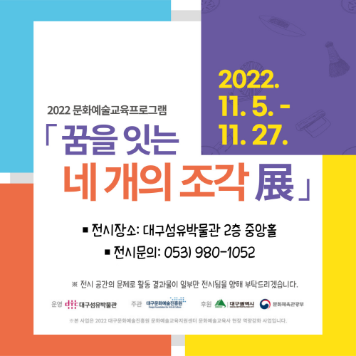 대구섬유박물관이 2022 문화예술교육사 현장 역량강화 사업 ‘꿈을 잇는 네 개의 조각’ 프로그램을 마무리하며 작은 전시회를 연다.