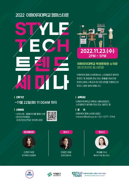 이번 행사는 이화여대 캠퍼스타운 유튜브 채널에서 생중계되며 오프라인 참가자는 오는 22일까지 온라인으로 접수받는다.