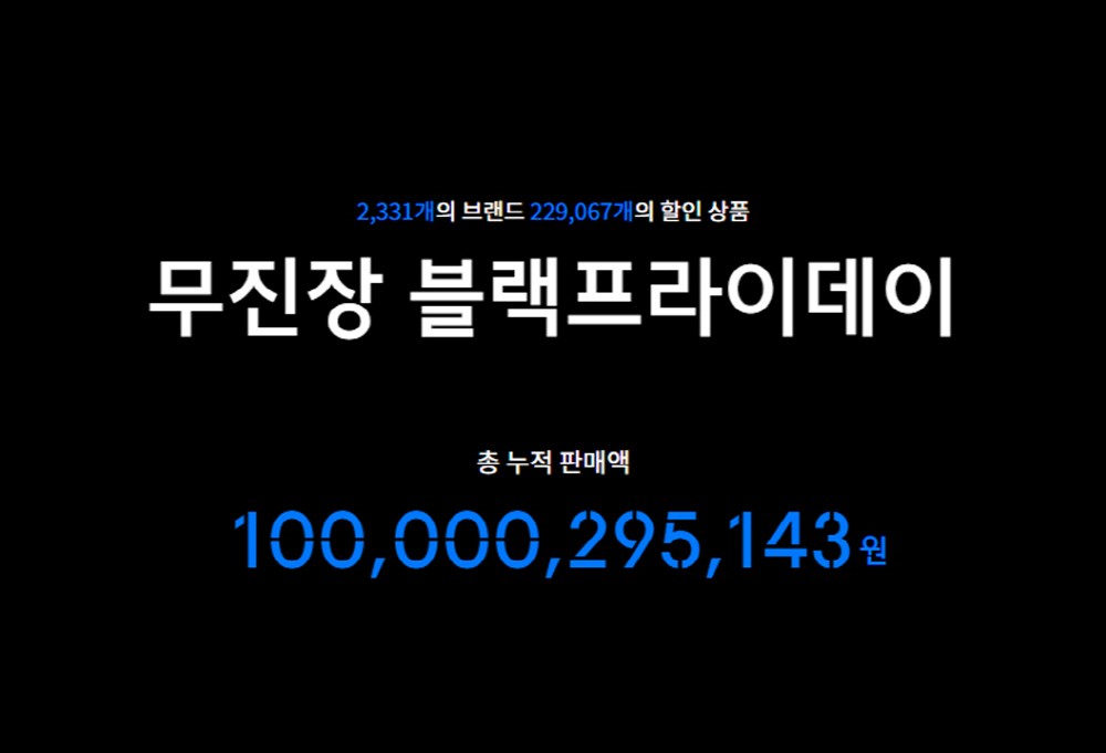 오픈 당일 누적 판매액이 지난해 블랙 프라이데이보다 2배 가까이 늘어난 338억원을 돌파했고 5일 차인 18일 오전 9시 26분을 기점으로 무진장 블프의 누적 판매액은 1000억원을 넘어섰다. 하루 평균 200억원 이상, 1시간당 평균 9억원 규모의 판매가 이루어진 셈이다. 최단 기간 역대 최대 흥행을 기록한 것.