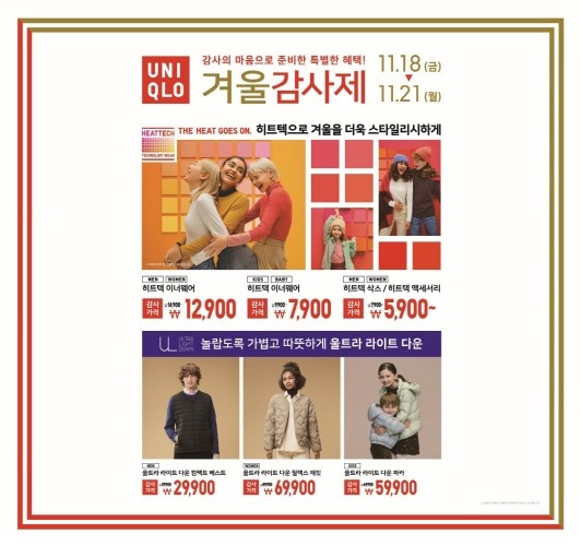 ‘유니클로’가 11월 18일부터 21일까지 4일간 겨울 감사제를 실시한다.