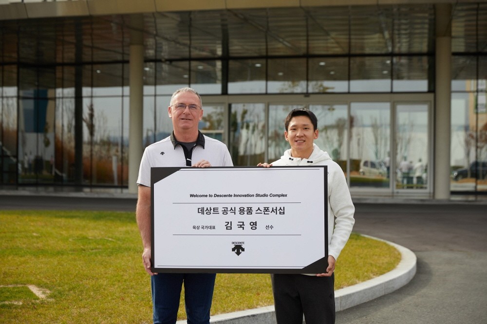 지난 21일 부산 소재 데상트 신발 R&D 센터인 DISC에서 한국 남자 100m 신기록을 보유한 김국영 선수와 DISC-부산 센터장인 크레이그 산토스 부사장이 만나 공식 용품 스폰서십 계약식을 진행하였다.