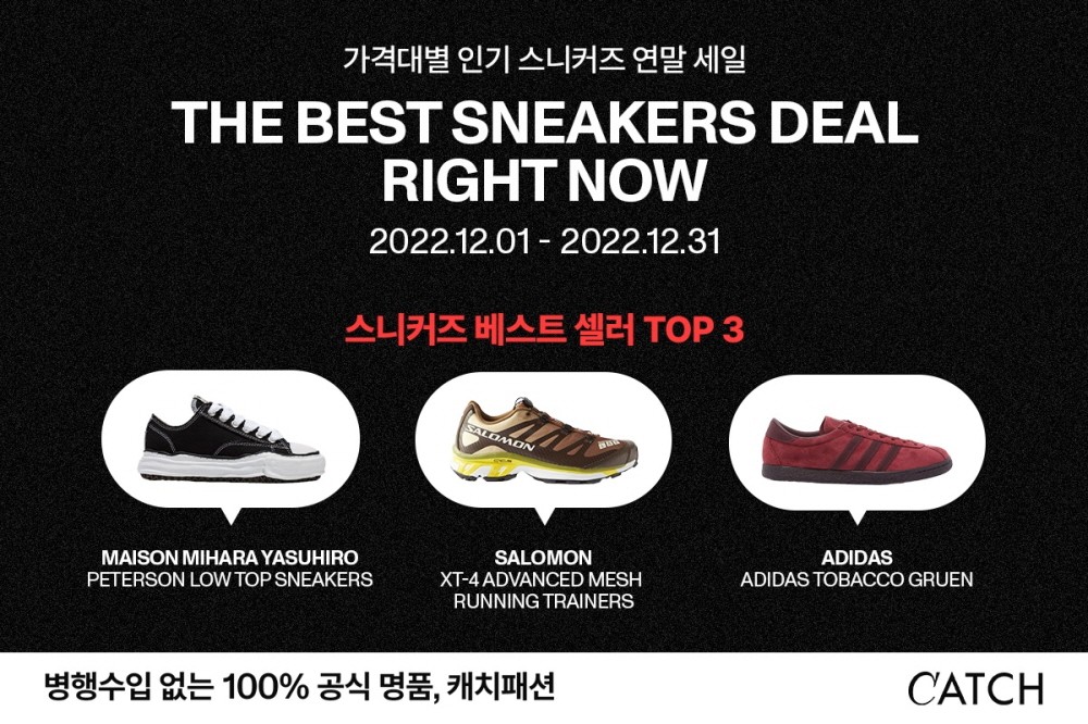 캐치패션은 올해 스니커즈 베스트 셀러 TOP3를 선정하기도 했다. 고프코어룩 트렌드의 대표 아이템으로 불리는 ‘살로몬’ XT-4 어드밴스 메시 러닝 트레이너스가 가장 큰 인기를 얻고 있다. 최근 패피들에게 다시 주목받고 있는 브랜드 ‘아디다스’ 토바코 그루엔, ‘메종 미하라’ 야스히로 피터슨 로우탑 스니커즈도 이름을 올렸다.