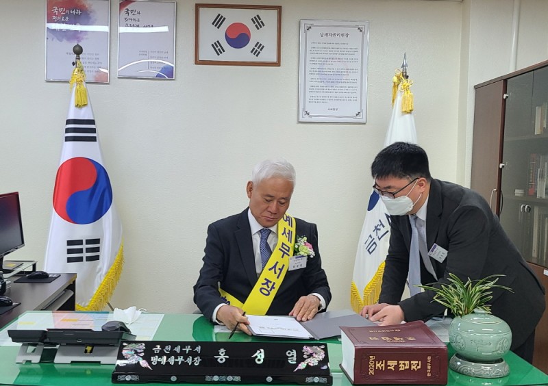 홍성열 회장은 하루 동안 명예세무서장으로 금천세무서 유공공무원에게 표창장을 수여하고 세무서 순시, 업무 결재 등의 직무를 수행했다.